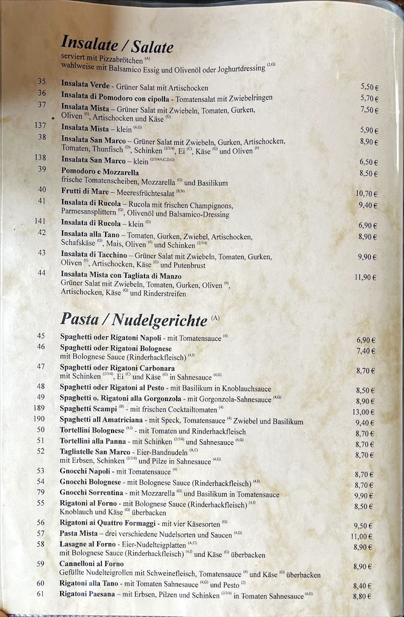 Pizzeria San Marco's menu offers an impressive array of dishes that will satisfy a wide variety of tastes, from light salads and savory pastas to indulgent pizzas and rich meat and seafood options. Whether you're stopping by for a quick bite or a leisurely meal, there's something for everyone at this charming Italian restaurant.